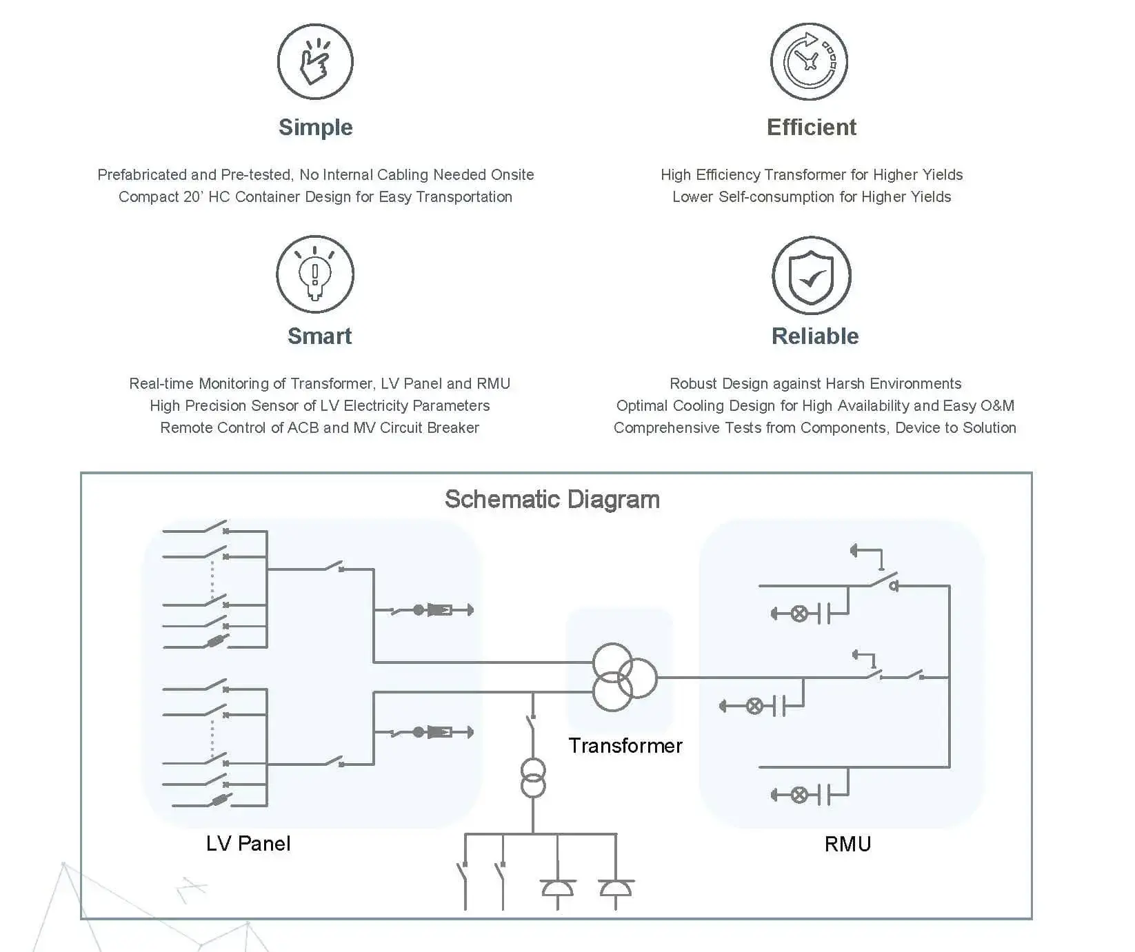 3 - Extra expense needed for optional features which standard product doesn’t contain, more options upon request. 4 -When ambient temperature ≥55℃, awning shall be equipped for YBS on site by customer.