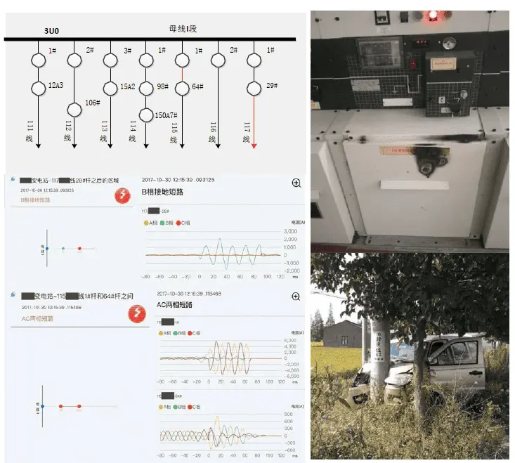 • 2017-10-30 12:15:39:115468 , Line 115, between poles 1# and 64#, phase A and C short circuit, Peak current at pole 1# exceeds 5000A Field feedback and fault process inversion: