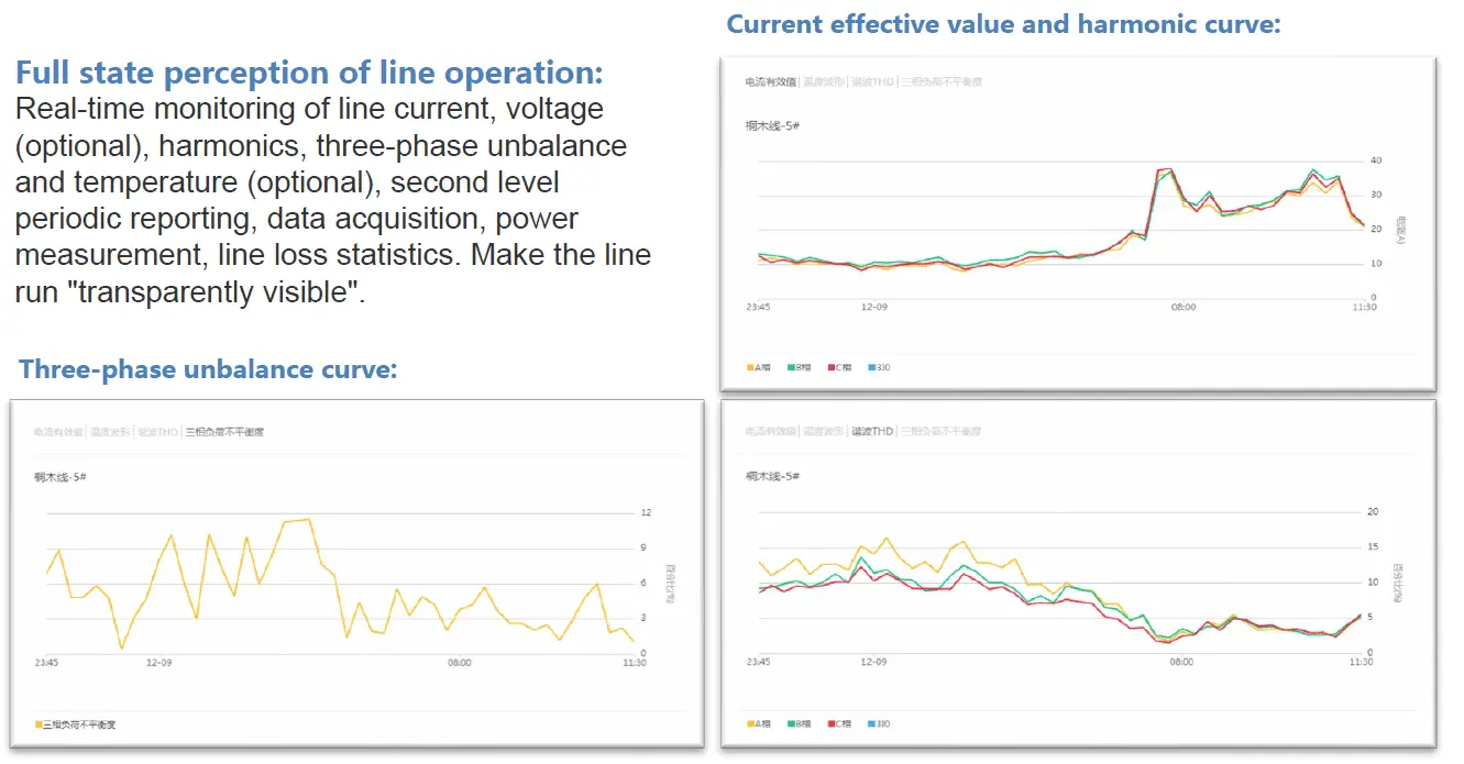 The sensor can calculate and report harmonics in real time. Based on the wide area synchronous data, various power quality indexes such as three-phase unbalance, grid frequency and frequency