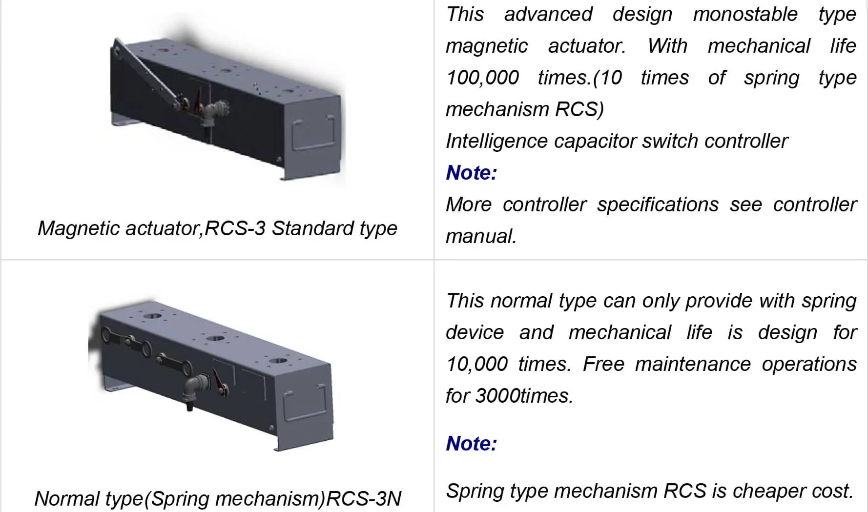 Standard RCS-3 capacitor switch is using magnetic actuator.