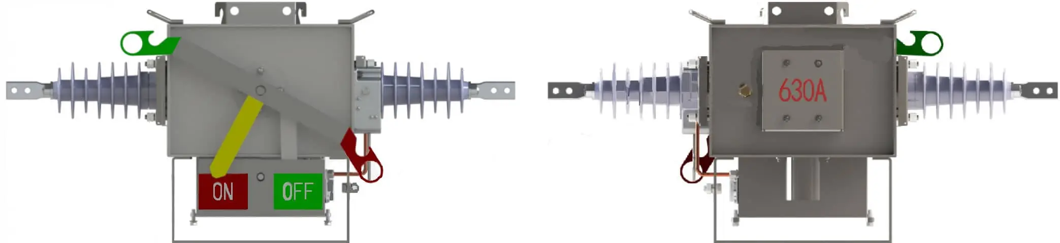 Corrosion resistant, Composite bushingManual lock-out mechanism (including hook stick) Reliable housing groundO/C indicator (made of light reflecting material), Operation counter, Gas density gauge which are easily visible from ground level.